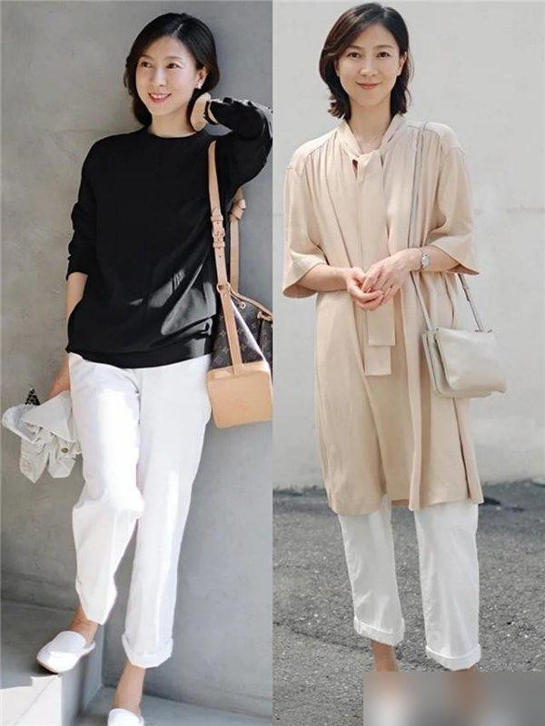 很多人以为过了四十就得靠花色博眼球其实恰恰相反越简洁越能衬气场。
